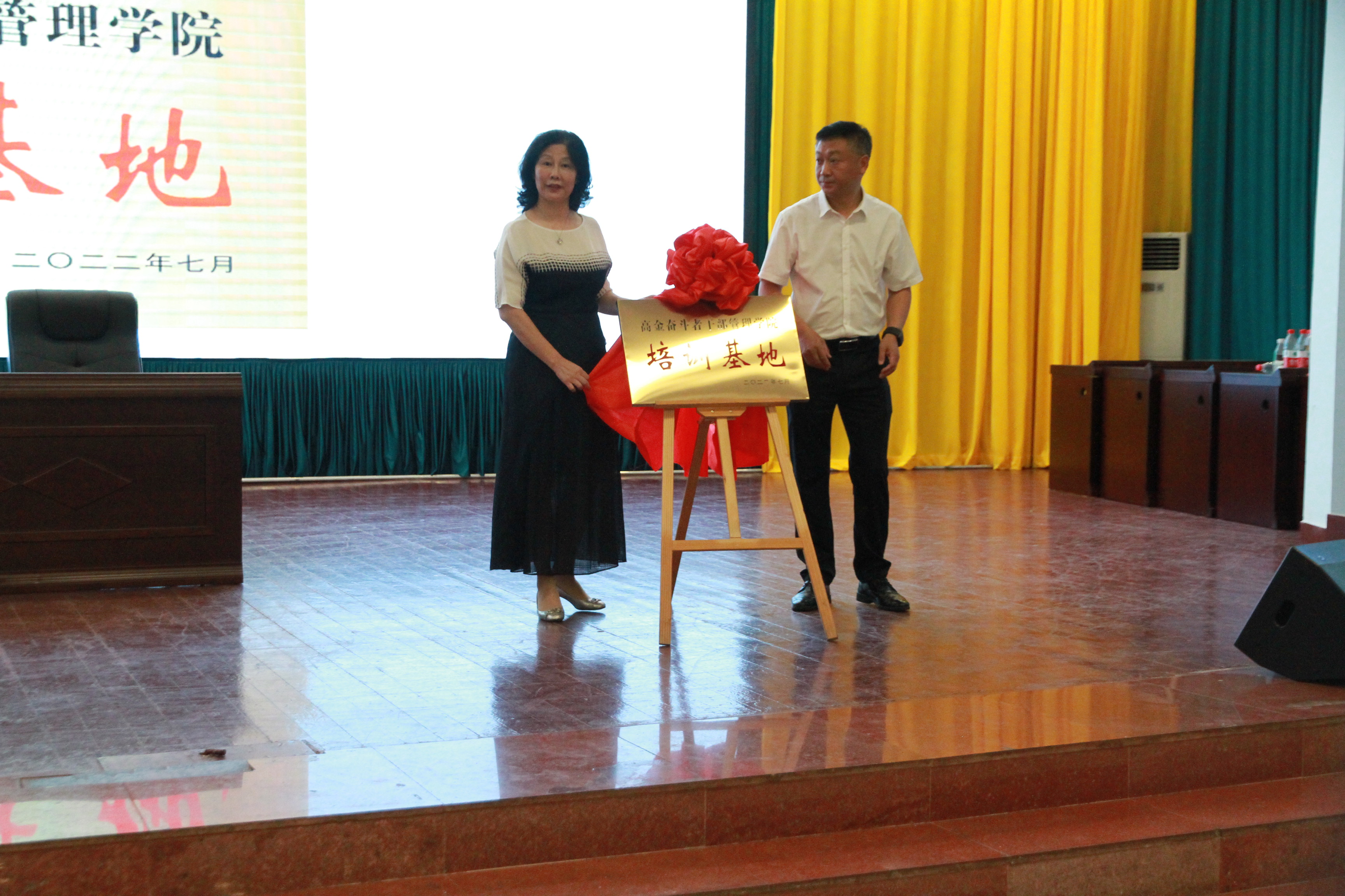 此次活動中,高金富恒集團熊海濤董事長與綿陽兩彈一星文化發展有限公司王應董事長在兩彈城大禮堂簽署了共建培訓基地戰略合作協議,并舉行了揭牌儀式。